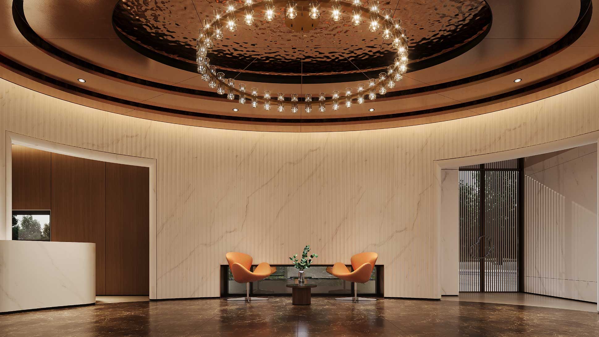 環形迎賓空間,宛如美術館般靜謐延展,